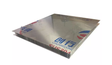 表板采用拉絲不銹鋼板或者鏡面不銹鋼板,背板采用鍍鋅鋼板,芯材采用鋁蜂窩芯,經過專用粘合劑復合而成。它的外觀很美觀,使其在建筑應用以及室內裝飾的各種表面加工方面得到廣泛流行。